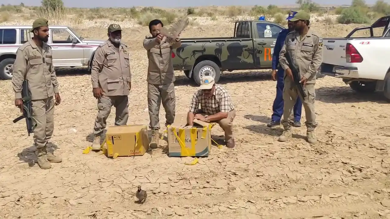 Like Peafowls, selected pairs of Chukars (Partridges) are also maintained at the administrative Camp outside CBC. Upon hatching they are reared to a semi-adult age (10 months approximately) and also released in the wild. In 2025 over two dozens were released through Punjab Wildlife Deptt in their natural habitat of Koh-e-Suleman Range, Rojhan. These endeavours manifest the strong commitment of Houbara Foundation towards promotion of wildlife conservation and habitat restoration.