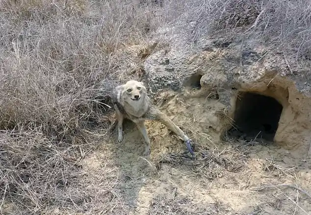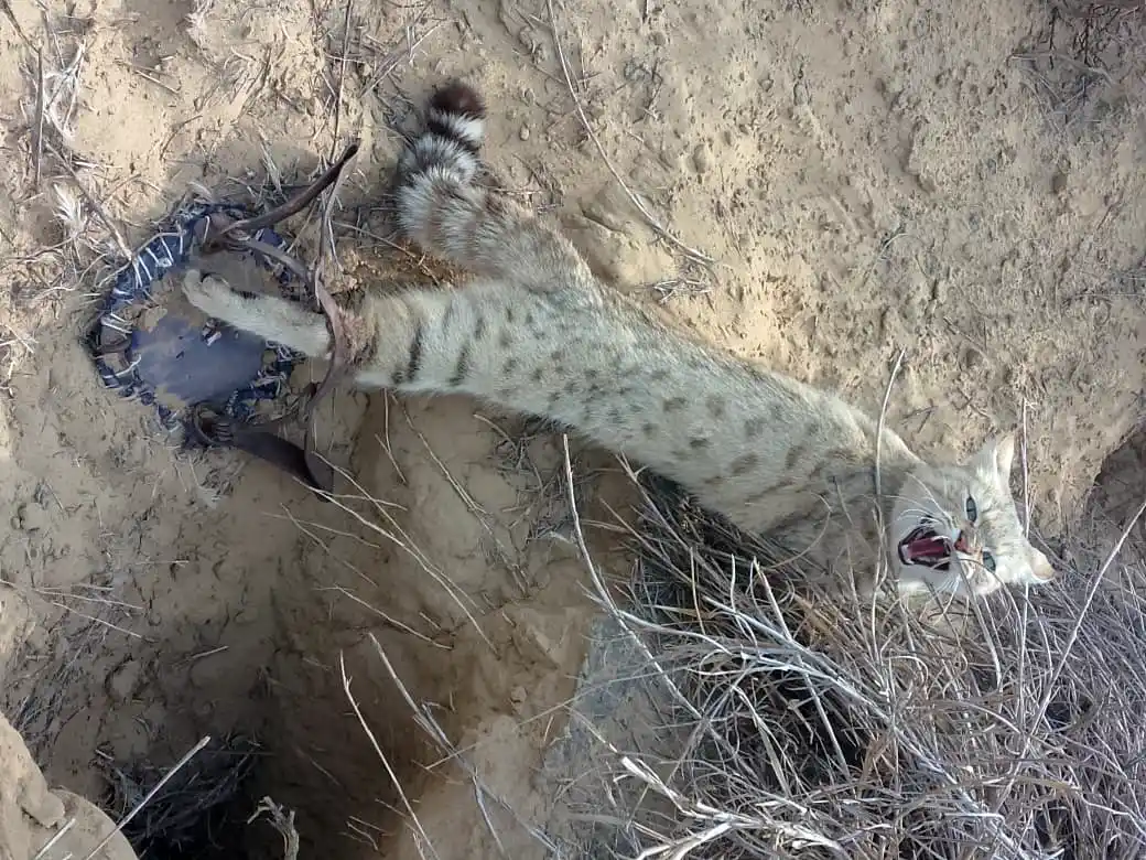 “The elusive Asiatic Wildcat pauses among desert shrubs.”
